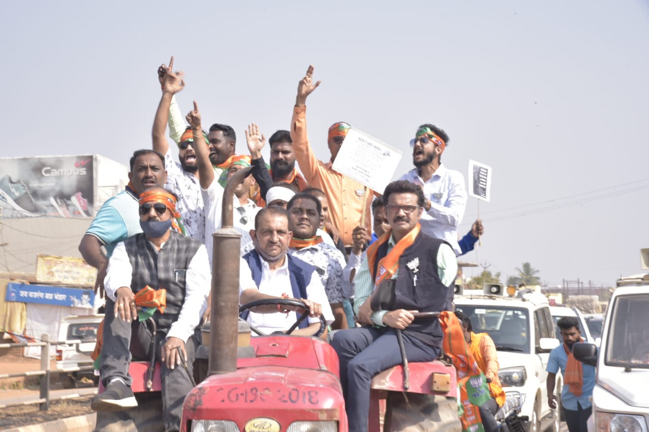आज धरना प्रदर्शन स्थल में भाजपा कार्यकर्ता बैलगाडी़,ट्रेक्टर आदि में सवार होकर पहुँचे। आडा़वाल धरना कार्यक्रम में भाजपा प्रदेश महामंत्री किरणदेव ने कहा कि कांग्रेस की झूठी सरकार अब प्रदेश के किसानों के साथ अन्याय करने में आमदा है। वायदा निभाना तो एक तरफ,सरकार किसानों का धान नहीं खरीद पा रही है। बारदाना तक किसानों को स्वयं खरीदना पड़ रहा है। अन्नदाता किसानों के साथ भाजपा कंधे से कंधा मिलाकर खडी़ है।