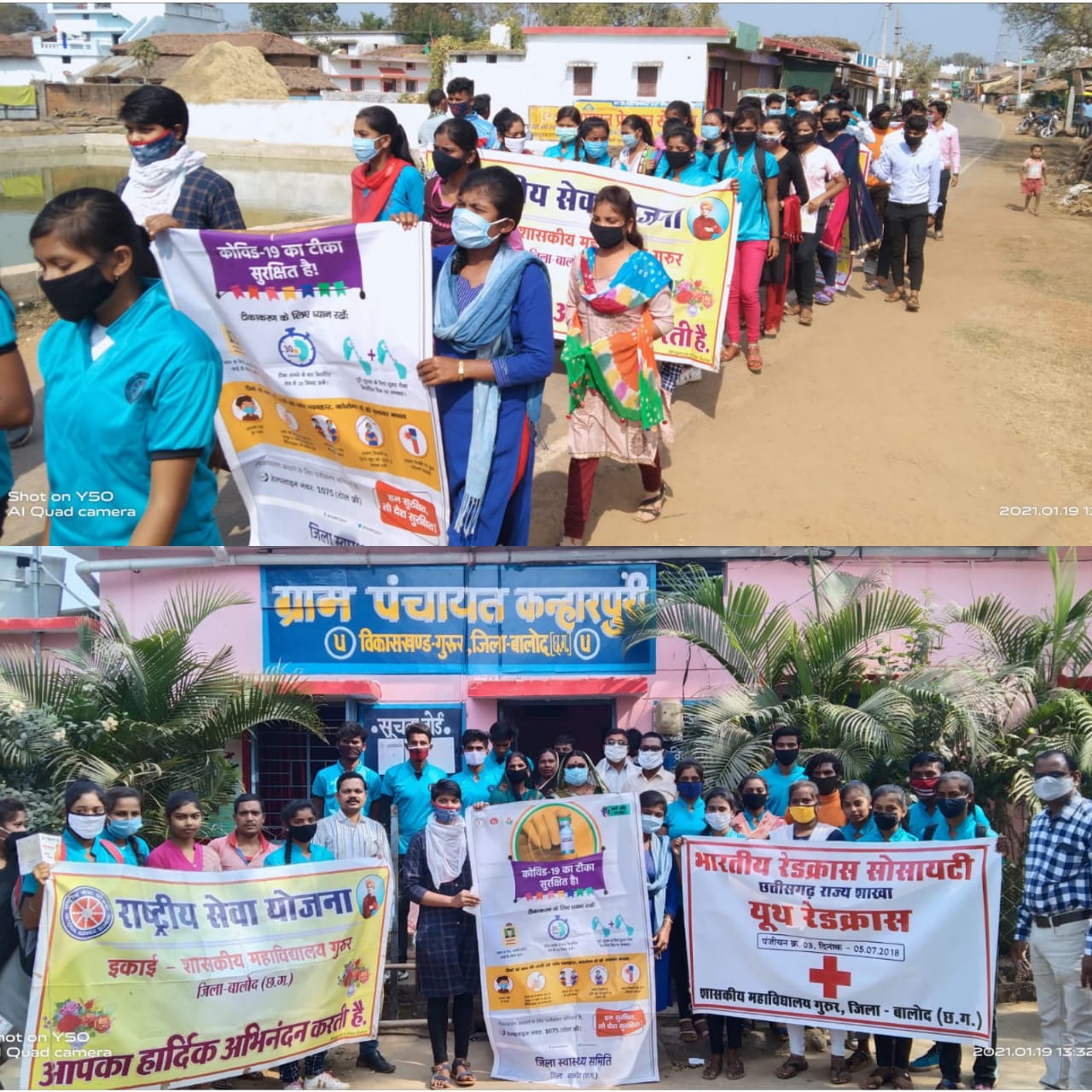 शासकीय महाविद्यालय गुरुर के रासेयो इकाई एवम् यूथ रेड क्रॉस सोसायटी द्वारा गोद ग्राम कन्हारपुरी में जन जागरूकता रैली का आयोजन किया गया। रैली को प्राचार्य महोदय डॉ. जे. एल. बघेल के द्वारा रवानगी किया गया। रैली के माध्यम से स्वयं सेवकों ने ग्रामीणों को कोरोना वायरस के रोकथाम के उपाय तथा कोरोना वैक्सीन टीकाकरण के आवश्यक सावधानी की जानकारी प्रदान किए। सार्वजनिक स्थानों पर पांप्लेट चस्पा कर भी आवश्यक जानकारी प्रदान किया गया । ग्राम पंचायत कन्हारपुरी के सरपंच श्रीमती भागा बाई साहू तथा अन्य जनप्रतिनिधियों ने भी इस अभियान में सहयोग प्रदान किया।