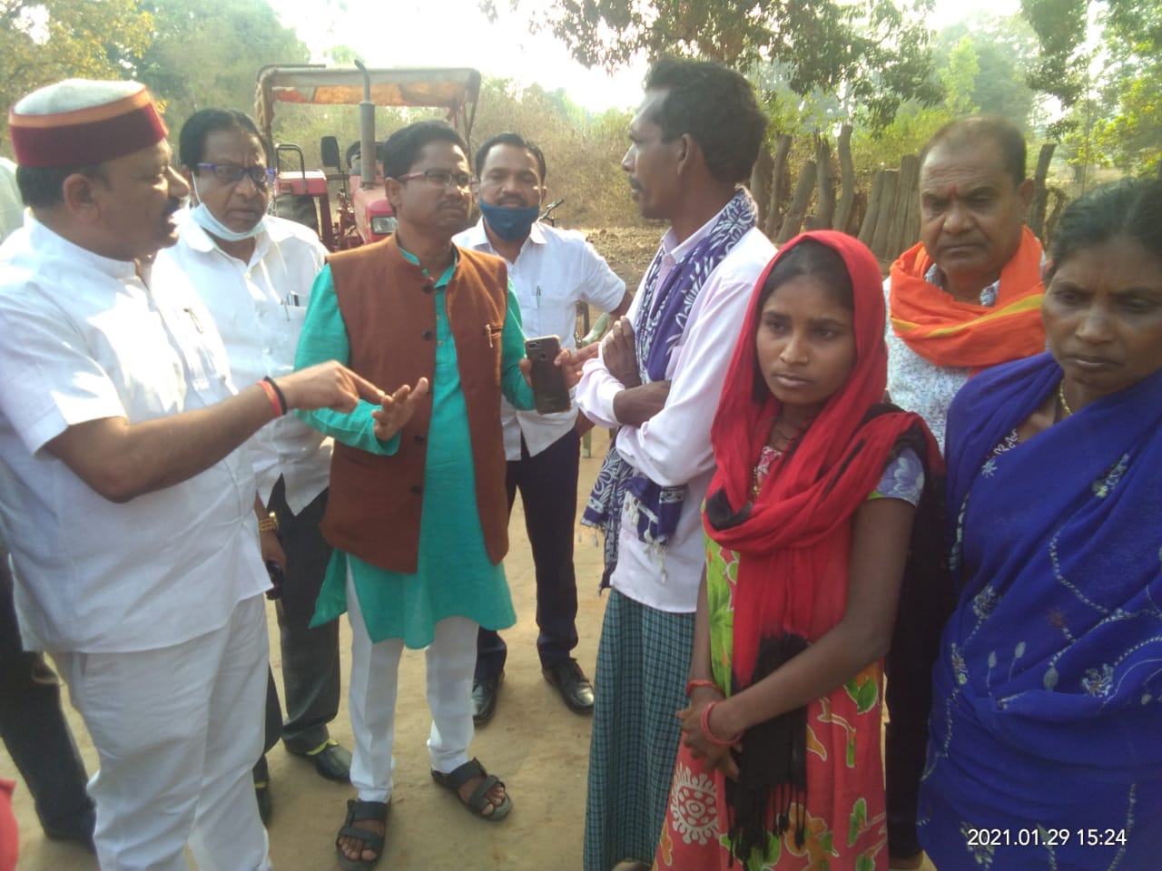 आज भारतीय जनता पार्टी जिला बस्तर का प्रतिनिधि मंडल भाजपा जिला अध्यक्ष रूप सिंह मंडावी के नेतृत्व में जिसमें उपाध्यक्ष योगेंद्र पांडे, महामंत्री रामाश्रय सिंह ,महामंत्री वेद प्रकाश पांडे, जिला पंचायत अध्यक्षा वेदवती कश्यप, उपाध्यक्ष मनीराम कश्यप, बस्तर जनपद अध्यक्ष टेकेश्वरी मंडावी, उपाध्यक्ष मोहन मौर्य, जिला पंचायत सदस्य निर्देश दीवान,मंडल अध्यक्ष भाजपा भानपुरी संतोष बघेल,महिला मोर्चा जिलाध्यक्ष दीप्ति पांडे ,पूर्व जिला पंचायत उपाध्यक्ष तरुण चोपड़ा ,विजय तिवारी, बलदेव बघेल,मीडिया प्रभारी आलोक अवस्थी उस पीड़ित परिवार से मिलने पहुंचे एवं उन्हें सांत्वना भी दिया एवं प्रशासन से मांग कि इस पीड़ित परिवार को दस लाख का मुआवजा राशि तत्काल दिया जाए और कहां कि हर संभव मदद आपको दिलवाने की कोशिश करेंगे ।छत्तीसगढ़ सरकार एवं जिला प्रशासन से मांग कि ऐसी घटना दोबारा ना हो