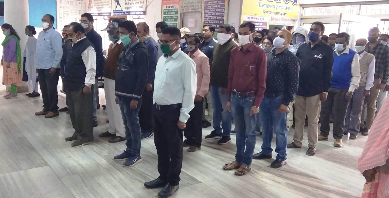 राष्ट्रपिता महात्मा गांधी के पुण्य तिथि को आज शहीद दिवस के रूप में मनाया गया। इस अवसर पर जिला कार्यालय परिसर में कलेक्टर चन्दन कुमार, अपर कलेक्टर एम.आर. चेलक, एसडीएम उमाशंकर बंदे, डिप्टी कलेक्टर विश्वास कुमार एवं जिला कोषालय अधिकारी सुश्री श्रद्धासुमन एक्का सहित अधिकारी-कर्मचारियों द्वारा देश की आजादी में अपने प्राणों की आहुति देने वाले शहीदों को स्मरण करते हुए दो मिनट का मौन धारण कर उन्हें श्रद्धांजलि दी गई।