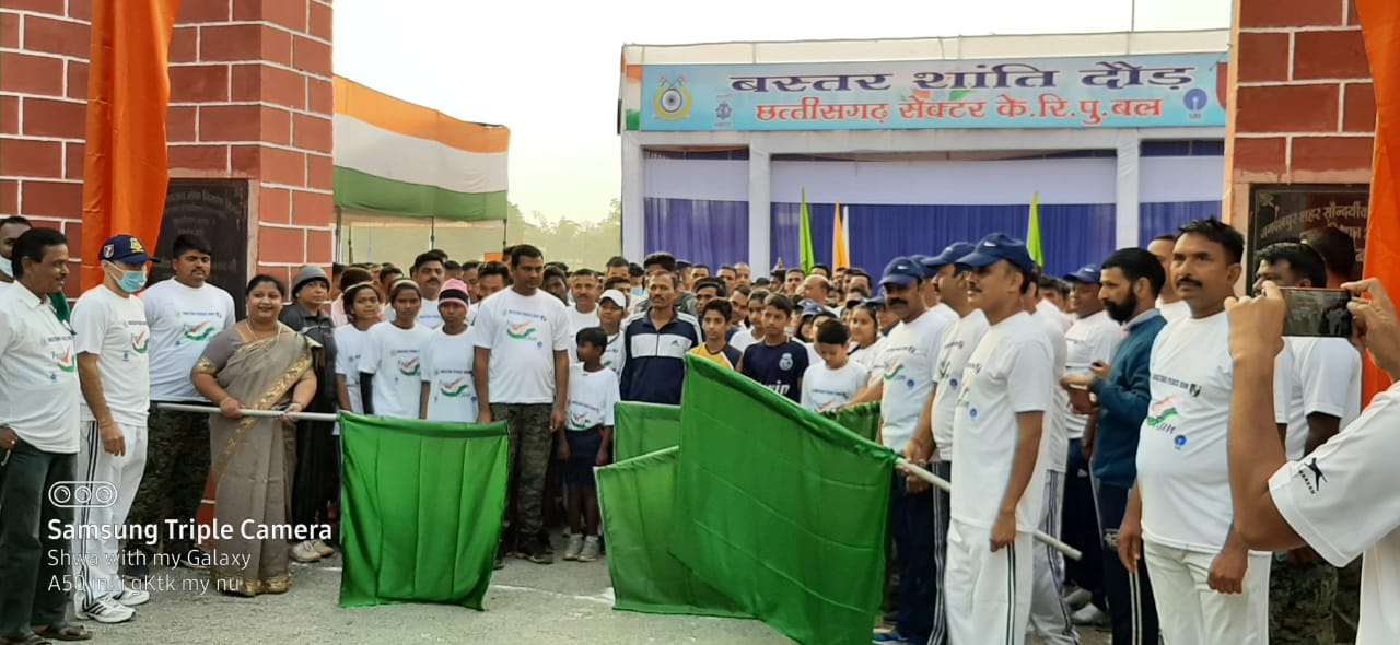 जगदलपुर।छत्तीसगढ़ के नक्सल प्रभावित जिला बस्तर में शांति के लिए 5 किलोमीटर ” बस्तर शांति दौड़ ” का आयोजन 31 जनवरी को सुरक्षा बलो के शहीदो की स्मृति और समाज में शांति एवं स्वस्थ जीवन शैली के बारे में जागरूकता पैदा करने के लिए किया गया । विश्व के सबसे विशाल केन्द्रीय सशस्त्र पुलिस बल ” केन्द्रीय रिजर्व पुलिस बल ” द्वारा धुर नक्सल प्रभावित क्षेत्रों में न केवल नक्सल उन्मूलन अभियानों द्वारा नक्सलियों से लोहा लिया जा रहा है, बल्कि नक्सल प्रभावित क्षेत्र के ग्रामीणों की सामाजिक स्थिति को सुदृढ़ करने हेतु भी निरतर प्रयास केन्द्रीय रिजर्व पुलिस बल द्वारा किया जा रहा है । इसी क्रम में जिला बस्तर के नक्सल प्रभावित क्षेत्रों एवं अंदरूनी ग्रामों से आए हुए ग्रामीणों को नक्सल विचारधारा से दूर रहने एवं मुख्य धारा से जुड़ने के लिए प्रोत्साहित किया गया ।