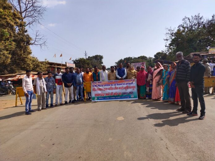 छत्तीसगढ़ प्रदेश कांग्रेस कमेटी के आव्हान पर ब्लॉक कांग्रेस कमेटी ने किसान संगठन का समर्थन करते हुए 3 घंटे चक्का जाम किया l देश के विभिन्न राज्यों के किसान संगठन मजदूर दिल्ली बॉर्डर पर दो महीनों से भी अधिक समय से कर रहें आंदोलन का समर्थन करते हुए ब्लॉक कांग्रेस कमेटी के अध्यक्ष रवि देवांगन के नेतृत्व मे नगर के जय स्तम्भ चौक मे चक्का जाम किया गया l रवि देवांगन ने कहा की केंद्र की मोदी सरकार ने किसानों पर तीन काले कानून थोप रही है जिसके विरोध मे दिल्ली बॉर्डर के किसान पुरे देश मे चक्का जाम कर रहें है l किसानों के चक्का जाम को कांग्रेस समर्थन कर नेशनल हाइवे 130 डी पर 3 घंटे चक्का जाम किया l
