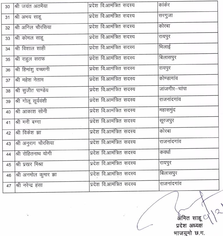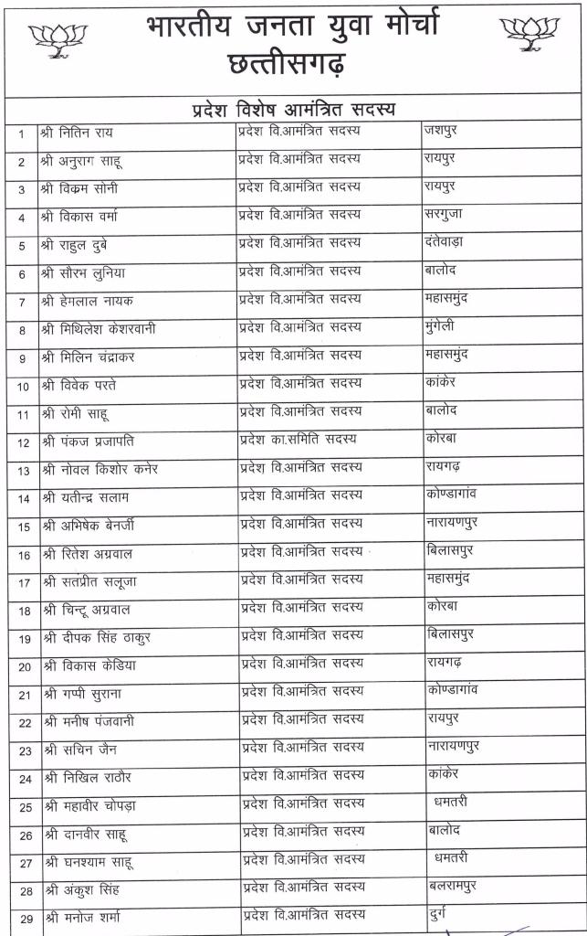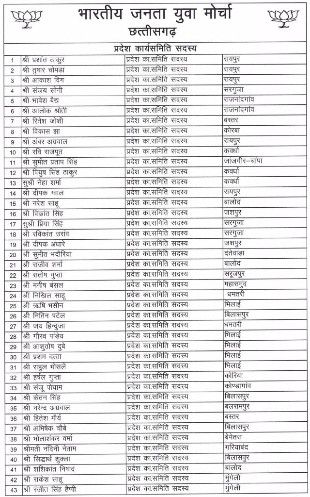 छत्तीसगढ़क्षेत्रीय समाचार भारतीय जनता युवा मोर्चा छत्तीसगढ़ द्वारा प्रदेश कार्यसमिति एवं जिलाध्यक्षों की घोषणा की गई By City Media - February 9, 2021 0 658 Facebook Twitter Google+ Pinterest WhatsApp भारतीय जनता पार्टी प्रदेशाध्यक्ष मा श्री विष्णु देव साय जी एवं प्रदेश महामंत्री संगठन मा श्री पवन साय जी की सहमति से अमित साहू प्रदेश अध्यक्ष भारतीय जनता युवा मोर्चा छत्तीसगढ़ द्वारा प्रदेश कार्यसमिति एवं जिलाध्यक्षों की घोषणा की गई –