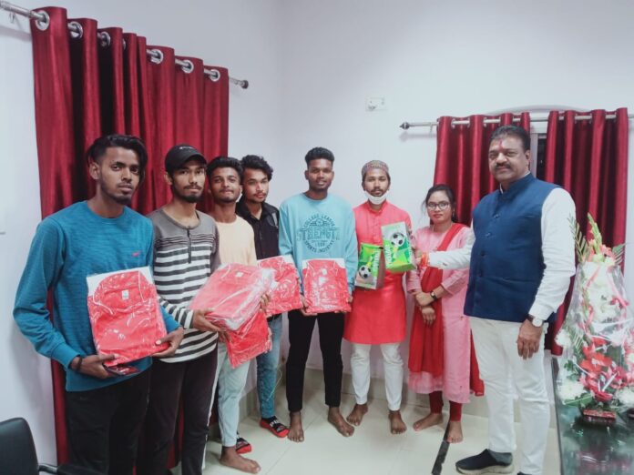 अनुकूल देव वार्ड के खिलाड़ियों को क्रिकेट किट तो जगदलपुर फुटबॉल अकादमी के खिलाडिय़ों को फुटबॉल और जर्सी उपलब्ध करवाया