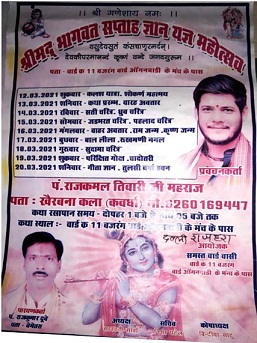 अंत्यंत हर्षोल्लास के साथ आप सभी सहपरिवार को आंमत्रित एवं सूचित किया जा रहा है कि, बजरंग वार्ड नंबर 11 शहीद अस्पताल के सामने आंगनबाड़ी मंच के पास दल्ली राजहरा तहसील डौण्डी जिला बालोद छत्तीसगढ़ में समस्त वार्डवासियों के द्वारा आप सबके तन,मन,धन,की सहयोग एवं आर्शीवाद से दिनांक 12/03/2021 से 20/03/2021तक समय प्रति दिन दोपहर 1-00 से शाम 5-00तक श्रीमद् भागवत ज्ञान यज्ञ सप्ताह का आयोजन किया जा रहा है, जिसमें आप सब सहपरिवार उपस्थित होकर भागवत कथा को श्रवण कर पुण्य के भागी बने एवं हमें सेवा का अवसर प्रदान करे।