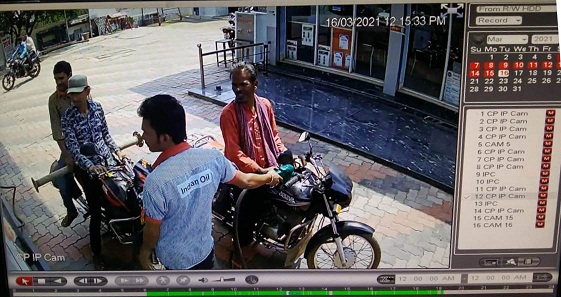 बालोद/देवरी – बालोद जिले के देवरी थाने में स्थित पेट्रोल पंप से दिनदहाड़े दो युवक बाइक लेकर फरार हो जाने की घटना हुई है | आरोपी सीसीटीवी कैमरे में कैद हो गए है | दिनांक 16 मार्च 2021 दोपहर 12 बजकर 15 मिनट पर पेट्रोल पंप पर खड़ी हीरो कंपनी की पैशन प्रो बाइक सीजी 08 एएन 7800 मोटरसाइकिल लेकर फरार हो गए | पुलिस द्वारा आरोपियों की तलाश की जा रही है |