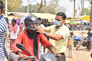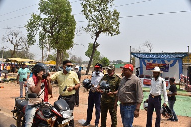 दिनांक 22.03.2021 को ग्राम नैमेड़ साप्ताहिक बाजार में आये ग्रामीणों को हेलमेट देकर यातायात नियमों का पालन करने हेतु समझाईश दिया गया ।