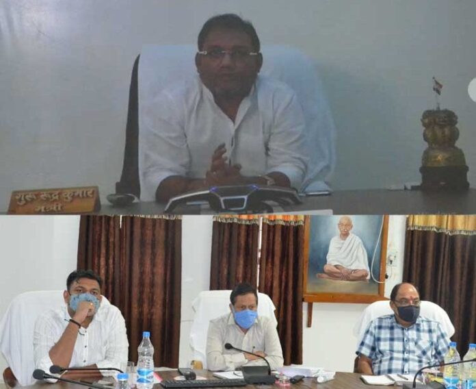 कलेक्टर धर्मेश कुमार साहू ने आज कलेक्टोरेट के सभाकक्ष में विडियो कान्फ्रेसिंग के बाद जिले में कोविड-19 के संक्रमण को रोकने हेतु किये जा रहे कार्यों की समीक्षा की। बैठक में कलेक्टर श्री साहू ने कहा कि प्रदेश के अन्य जिलों की अपेक्षा नारायणपुर में कोविड-19 के केसों की संख्या कम है। फिर भी सावधानी बरतते हुए हमें भविष्य को ध्यान में रखकर काम करना है। इसके लिए जरूरी है कि जिले के ऐसे क्षेत्र जहां कोरोना के ज्यादा केस मिल रहे हैं, उन क्षेत्रों में कोरोना की अधिक से अधिक जांच की जाये। इसके साथ ही दूसरे राज्यों, अन्य जिलों से आने वाले लोगों की कोराना जांच अवश्य की जाये। इस अवसर पर पुलिस अधीक्षक मोहित गर्ग, वनमंडलाधिकारी एनआर खुंटे, एसडीएम दिनेश कुमार नाग, संयुक्त कलेक्टर निधि साहू, मुख्य चिकित्सा एवं स्वास्थ्य अधिकारी डॉ ए.आर.गोटा, सिविल सर्जन डॉ. एमके सूर्यवंशी, के अलावा मीडिया प्रतिनिधिी अन्य अधिकारी मौजूद थे।