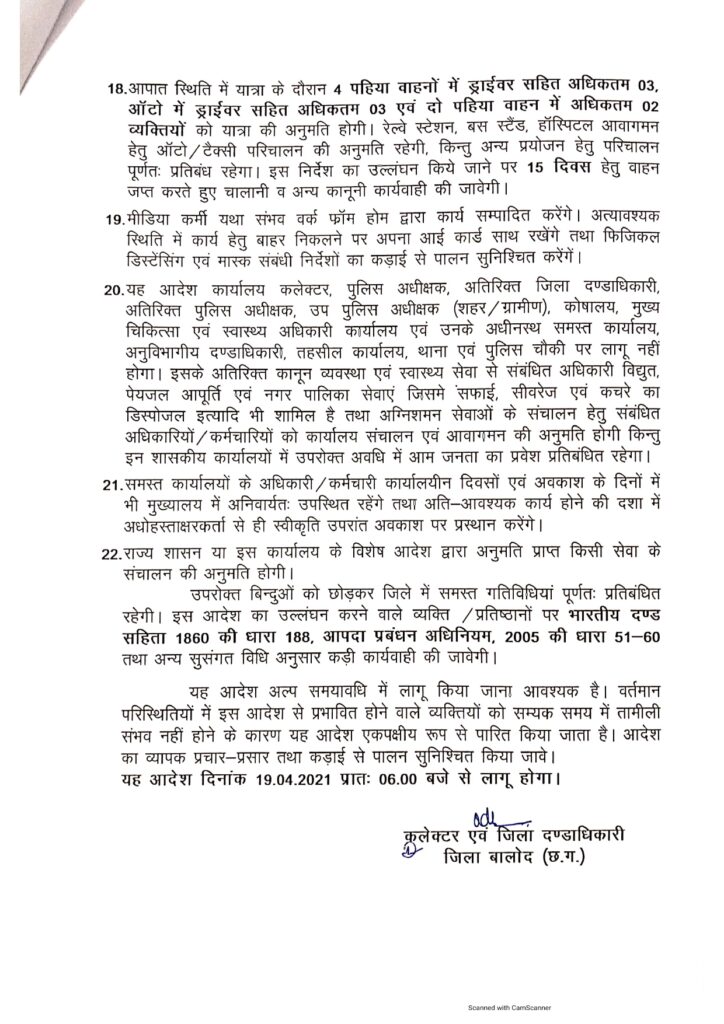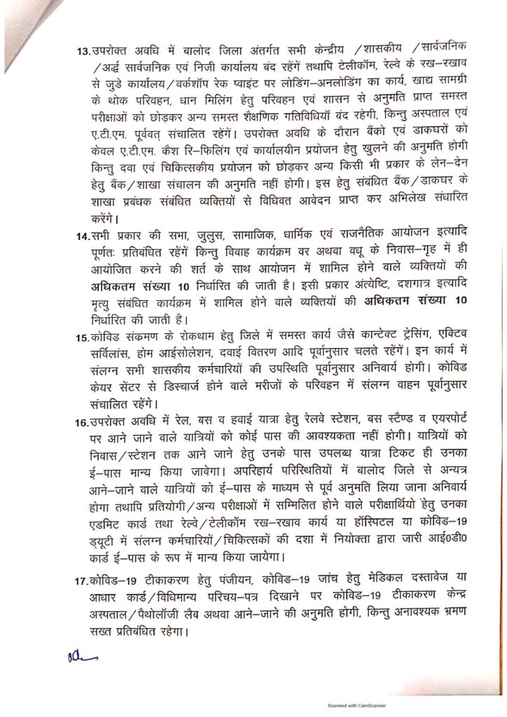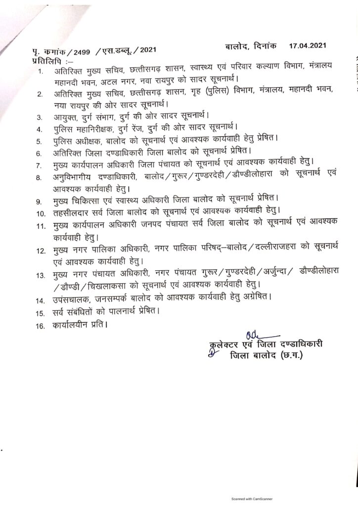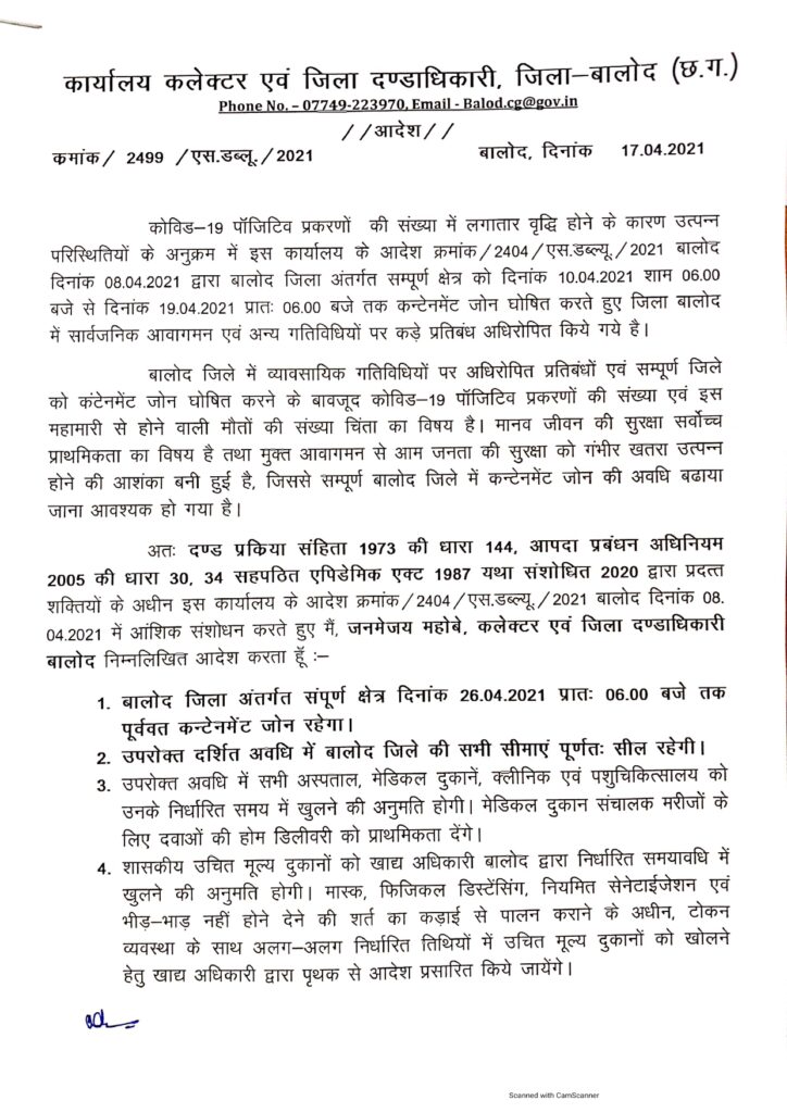 छत्तीसगढ़क्षेत्रीय समाचार Breaking बालोद जिले में बढ़ते कोरोना संक्रमण को देखते हुए जिला कलेक्टर ने बढाया लॉकडाउन By City Media - April 17, 2021 0 2491 Facebook Twitter Google+ Pinterest WhatsApp बालोद जिले में बढ़ते हुए कोरोना संक्रमण को देखते हुए जिला कलेक्टर जन्मेजय महोबे द्वारा लॉक डाउन में सब्जी एवं फल विक्रेताओं को छुट देते हुए 26 अप्रेल प्रातः 6 बजे तक बढ़ाने का निर्णय लिया गया है |