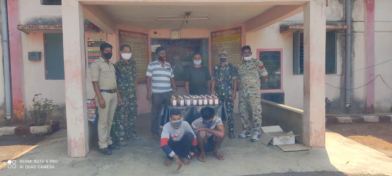जगदलपुर।कोरोना काल में दीगर राज्य के अवैध शराब को जिला बस्तर थाना भानपुरी अंतर्गत खपाने हेतु परिवहन किया जा रहा था। मुखबीर सूचना पर पुलिस अधीक्षक दीपक झा, अतिरिक्त पुलिस अधीक्षक ओपी शर्मा के मार्गदर्शन में एवं पुलिस अनुविभागीय अधिकारी उदयन बेहार के पर्यवेक्षण में थाना प्रभारी भानपुरी राजेश मरई के द्वारा त्वरित कार्यवाही करते हुये 21 अप्रैल को मुखबीर के आधार पर सउनि बाबुलाल दास के हमराह स्टाप प्रआर नितेश मेश्रााम, आर. मनोज सुधाकर, आर. मोहन सिह ध्रुवे, आर. प्रदीप मरकाम सहायक आर. रघुनाथ कोर्राम, महिला आर. पिंकी मिश्रा आर. चालक संदीप सलाम के टीम गठित कर ग्राम तारागांव एनएच 30 मेन रोड के पास पहुंच कर एमसीपी की कार्यवाही दौरान एक सिल्वर रंग की मैक्स वाहन आया जिसका नंबर सीजी -13- सी – 0591 अंकित था को रोककर वाहन चालक का नाम पता पुछने पर अपना नाम अशोक दिवान पिता चैतन दिवान जाति कलार उम्र 30 वर्ष निवासी बाकेल खासपारा चालक के बगल सीट मे बैठे व्यक्ति कानाम नयेन्द्र सिह उर्फ बबलु पिता अनंत सेठिया उम्र 23 वर्ष जाति कलार निवासी खासपारा बाकेल का रहने वाला बताया। वाहन का तलाशी लिया गया वाहन के अदंर एक सफेद रंग की काटुन में मध्यप्रदेश निर्मित 50 नग गोवा अंग्रेजी शराब का पौवा प्रत्येक में 180 एमएल भरा हुआ कुल जुमला शराब 9 लीटर कीमती 6 हजार रूपया एवं सिल्वर रंग की मैक्स वाहन क्रमांक सीजी -13- सी – 0591 को जप्त किया गया ।