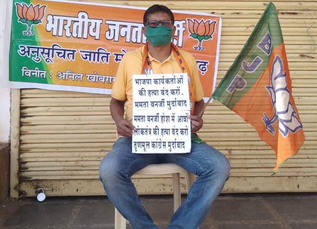 तृणमूल कांग्रेस के कार्यकर्ताओं द्वारा बंगाल में की जा रही आगजनी, हिंसा एव हत्या के विरोध में अनुसूचित जाति मोर्चा के प्रदेश मीडिया प्रभारी अनिल खोबरागड़े एवं जिला सदस्य सागर गनीर सहित अनेक पदाधिकारीयों कार्यकर्ताओं ने अपने अपने घरों के बाहर धरना प्रदर्शन कर हिंसा के शिकार हुए भाजपा नेताओं को श्रद्धांजलि अर्पित की ।