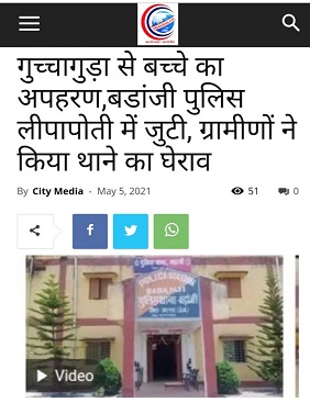 जगदलपुर। बस्तर जिले में लॉकडाऊन लगा हुआ है और लोहंडीगुड़ा थाना के सामने अपहरणकर्ता रिसाली भिलाई निवासी ठेकेदार मिश्रा अपहृत बच्चे के साथ मय गाड़ी पकड़ाया जिसको बडांजी पुलिस के सुपुर्द कर दिया जिसके बाद बड़ांजी पुलिस अपनी नई कहानी गढ़ रही है और ठेकेदार को फरार बता रही हैं। अब यह प्रश्न उठता है कि यह गोल-मोल बातें स्वयं पुलिस क्यों अपने रोजनामचे में कह रही है। प मंगलवार को गुच्चागुड़ा के बच्चे का कथित तौर पर अपहरण किये जाने के मामला सामने आया था और बडांजी पुलिस शुरुआत से ही इस मामले को दबाने की कोशिश कर रही थी और थाना प्रभारी राजेंद्र सिंहा स्वयं अतिरिक्त पुलिस अधीक्षक शर्मा तक को गुमराह करने से बाज आए किन्तु ग्रामीणों का इतना विरोध हुआ कि भिलाई के ठेकेदार मिश्रा के खिलाफ अंततः कार्रवाई किया गया।