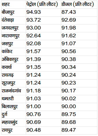 रायपुर – रायपुर में पेट्रोल और डीजल के दाम भी बढ़ गए हैं। कोरोना महामारी के कारण पुरे छत्तीसगढ़ में लॉकडाउन लगा हुआ है और इसके कारण लोगों की अर्थव्यवस्था पटरी पर आ गई है, उसमें बढ़ते ईंधन के दाम ने आग में घी डालने का काम किया है। इस बार पेट्रोल के दाम 90 रुपए के पार हो गया है। 3 दिनों में पेट्रोल में 82 पैसे तो वहीं डीजल में 1 रुपए 3 पैसे की बढ़ोतरी हुई है।