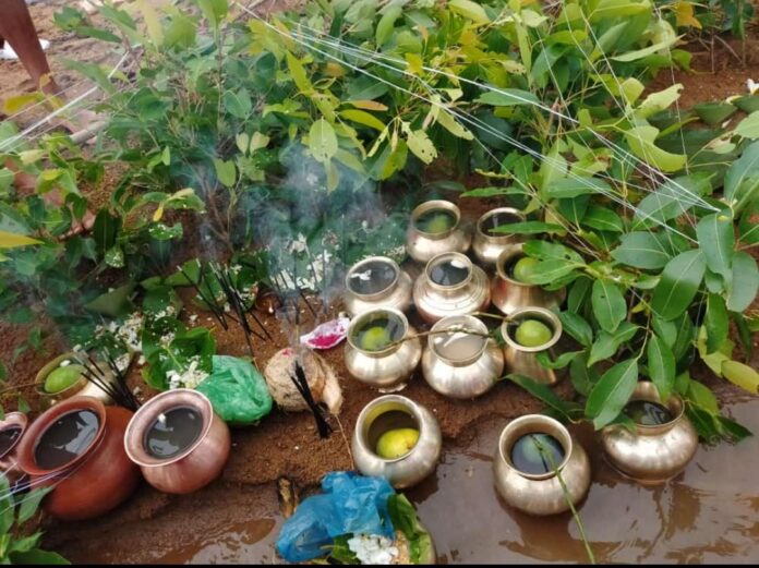 गांव के सभी लोग किसी नाले के पास एकत्रित होकर पूर्वजों के याद में वहां आम की फांकियां नाले में विसर्जित करते है। फिर वहां जामून की लकड़ी गाड़कर उसके नीचे धान से भरे दोने रखते है। उन दोनो पर दीपक जलाये जाते है। फिर अपने पितरों को याद करते हुये सुख समृद्धि की कामना करते है।