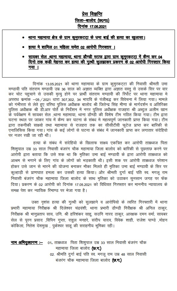 छत्तीसगढ़क्षेत्रीय समाचार महामाया हत्या मामले का पुलिस द्वारा किया गया खुलासा By City Media - May 17, 2021 0 1306 Facebook Twitter Google+ Pinterest WhatsApp दल्लीराजहरा – दल्लीराजहरा सिटी मीडिया न्यूज़ चैनल द्वारा कल ही प्राथमिकता के आधार पर इस न्यूज़ को प्रसारित किया |