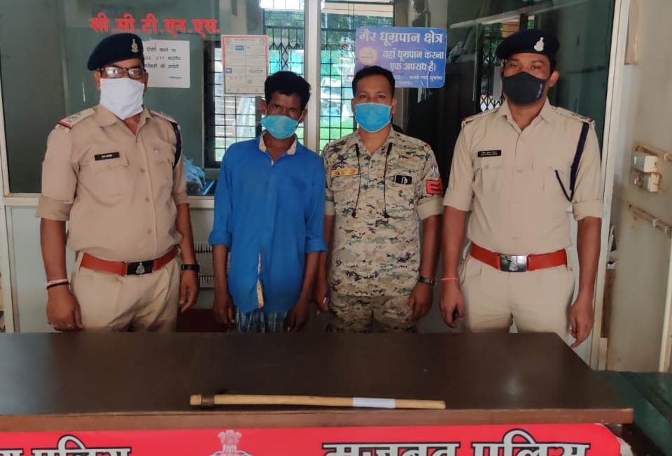 जिस कारण डमरू भारती ने मुन्ना उर्फ लछिन्दर के गले में टंगिया से वार कर भाग गया है जिस पर उक्त टीम के द्वारा आरोपी के घर में दबिष देकर आरोपी डमरू भारती को पकड़ कर पूछताछ करने पर डमरू भारती ने बताया कि मेरी पत्नि से फोन में बात करता था जिसके कारण मैं गुस्से में आकर दिनांक 17.05.2021 के रात्रि 11.30 बजे से 12.00 बजे के दरम्यानी रात में जब सुमन भारती और लछिन्दर कष्यप छत के उपर सो रहे थे उसी समय मैं अपने साथ लेकर गये टंगिया से हत्या करने की नियत से मुन्ना के गले में मारकर वहां से भाग गया था और घटना में प्रयुक्त टंगिया को घर में ही छुपा कर रखा हूं बताने पर आरोपी के निषांदेही पर टंगिया को जप्त किया गया। आरोपी का कृत्य अपराध धारा 307 भादवि का कारित करना पाये जाने से आरोपी के विरूद्ध अपराध क्रमांक-137/2021 धारा 307 भादवि0 कायम कर आरोपी को गिरफ्तार कर विवेचना में लिया गया।