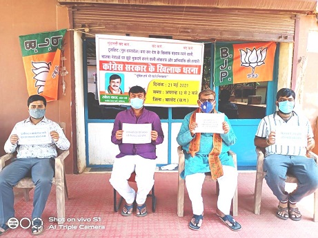 आज भारतीय जनता पार्टी प्रदेश नेतृत्व के आह्वान पर टूल किट बनाकर देश के खिलाफ षड्यंत्र रचने वाली,भाजपा नेताओं पर झूठे मुकदमे करने वाली,लोकतंत्र और अभिव्यक्ति की हत्यारी कांग्रेसी सरकार के खिलाफ आज भाजपा शहर मंडल के कार्यकर्ताओं ने अपने अपने निवास स्थान में दिया धरना |
