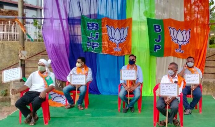 डोण्डी- आज डोण्डी थाना पार्टी के वरिष्ठ कार्यकर्ता छगन यदु,सोमेश साहू,मण्डल अध्यक्ष मनीष झा,नगर पंचायत अध्यक्ष सोमेश सोरी,उपाध्यक्ष रूपेश नायक एक साथ धरना दिए। देश को बदनाम करने की साजिश उजागर होने के बाद लोकतंत्र की हत्या और अभिव्यक्ति की हत्यारी कांगेस द्वारा की जा रही गुंडागर्दी के खिलाफ प्रदेश व जिला भाजपा के आव्हान पर मण्डल अध्यक्ष मनीष झा ने कहा कि कांग्रेस पार्टी द्वारा सोशल मीडिया के टूलकिट के माध्यम से बनाए गए गुप्त दस्तावेज को पकड़ने में सफलता हाथ लगी जिस दस्तावेज में भारत देश एवं हमारे देश के यशस्वी प्रधानमंत्री जी को बदनाम करने की साजिश रची जा रही थी।नगर पंचायत अध्यक्ष