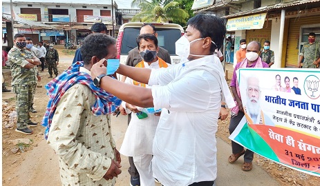 हम समाज के अंतिम व्यक्ति तक पहुंचने में सफल हो रहे है केन्द्र सरकार प्रदेश सरकार को हर संभव मदद कर रही है। लेकिन प्रदेश की सरकार कोरोना से लड़ने के बजाय अपने आपसी लड़ाई में व्यस्त है ।जिसका नुकसान प्रदेश की जनता को भुगतना पड़ रहा है। तत्पश्चात जरूरत मंदो को मास्क,सेनेटाइजर,स्वास्थ उपकरण एवं अन्य सामग्री का वितरण किया गया। इस अवसर पर भाजपा नेता संदीप झा,जैकी कश्यप,प्रेमनाथ उसेंडी,बंशीलाल नाग,आकाश ठाकुर,बिट्टू अंगीरा ,बिस्सू दत्ता