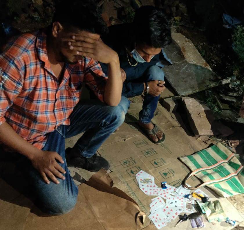 थाना कोतवाली को सूचना प्राप्त हुआ था कि सिटी ग्राउण्ड क्षेत्र में अवैध रूप से कुछ व्यक्तियों द्वारा रूपये पैसों का दांव लगाकर हारजीत का जुआ खेल रहे है कि सूचना पर वरिष्ठ पुलिस अधीक्षक महोदय, दीपक झा व अति0 पुलिस अधीक्षक ओमप्रकाष शर्मा के मार्गदर्षन एवं नगर पुलिस अधीक्षक हेमसागर सिदार के पर्यवेक्षण में थाना प्रभारी कोतवाली निरीक्षक एमन साहू के नेतृत्व में उपनिरीक्षक गुनेश्वरी नेरटी, हमराह स्टाफ आरक्षक रवि सरदार, रवीन्द्र कुमार ठाकुर व भुपेन्द्र नेताम व दीपक कुमार के टीम को तैयार कर, दर्षित स्थल पर रेड कार्यवाही किया गया। जहाॅ मौके पर जुआरी जुआ खेलते हुये रंगेहाथ पकड़ा गया। जिनसे पुछताछ करने पर अपना नाम 1. नवीन राव पिता नागेश्वर राव नि0 सूर्या कालेज के पास राजेन्द्र जगदलपुर 2. विनय चैहान पिता विरेन्द्र चैहान निवाासी ललन किराना स्टोर्स के पास, राजेन्द्र नगर जगदलपुर से मौके पर जुआ खेलते पकड़े जाने पर कब्जे से नगदी रकम 1160/-रूपये, तास के 52 पत्ते व स्कुटी क्रमांक-CG17KG 5439 को जप्त किया गया तथा आरोपियो के विरूद्ध धारा 13 जुआ एक्ट के तहत गिरफ्तार कर कार्यवाही किया गया है।