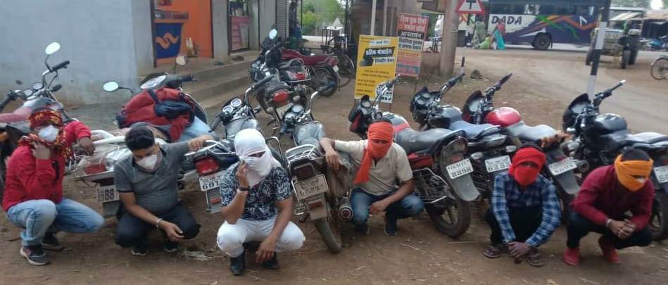 आरोपियो से 06 नग मोबाईल हैण्डसेट, 09 नग माटर सायकल बरामद नगदी रकम 9010 रूपये बरामद।