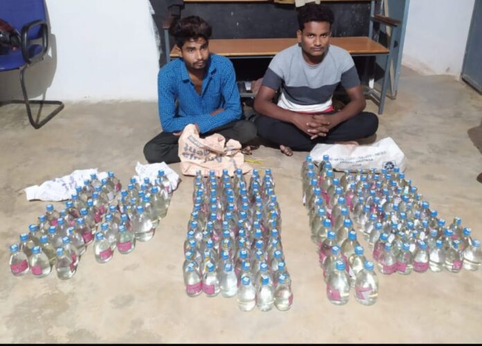 डौण्डीलोहारा गंजईडीह मार्ग तरफ से संजारी की ओर एक स्कुटी में 02 व्यक्ति सवार होकर आ रहे हैं। स्कुटी के सामने बोरी एवं पीछे बैठे व्यक्ति भी बोरी में भारी वस्तु रखे जिसे पुलिस पार्टी द्वारा घेराबंदी कर पकड़े गवाहों के समक्ष पूछताछ करने पर स्कुटी चालक खेमलाल सिन्हा पिता कुंजीलाल सिन्हा उम्र 25 वर्ष, साकिन भेड़ी थाना डौण्डीलोहारा व पीछे बैठे व्यक्ति मनीष साहू पिता रामदास साहू उम्र 25 वर्ष डौण्डीलोहारा वार्ड क्रमांक 11 थाना डौण्डीलोहारा जिला बालोद (छ0ग0) का रहना बताया गवाहों के समक्ष स्कुटी क्रमांक सी.जी.-24-पी.-7643 को तलाशी लिया गया जो स्कुटी चालक खेमलाल एवं पीछे बैठे मनीष साहू के पास अलग-अलग प्लास्टिक के बोरी में रखे देशी मंदिरा प्लेन शराब अद्धी 27 नग 10.125 बल्क लीटर कीमती 4,320 रूपये, देशी मंदिरा प्लेन शराब पौव्वा 168 नग 30.240 बल्क लीटर कीमती 13,440 रूपये, जुमला 40.365 बल्क लीटर कीमती 17760/- एवं परिवहन में प्रयुक्त स्कुटी काला ग्रे रंग का होण्डा ग्रेजिया क्रमांक सी.जी. -24-पी.-7643 को जप्त किया गया। आरोपी के विरूद्ध थाना डौण्डीलोहारा में अपराध क्रमांक 103/2021 धारा 34(2) आबकारी एक्ट कायम कर विवेचना में लिया गया। उक्त कार्यवाही में थाना प्रभारी डौण्डीलोहारा निरीक्षक मनीष शर्मा से दिशानिर्देश प्राप्त कर गौकरण भंडारी आरक्षक 132 देवेन्द्र भंडारी, आरक्षक 306 डोमेन्द्र बघेल का सराहनीय योगदान रहा ।