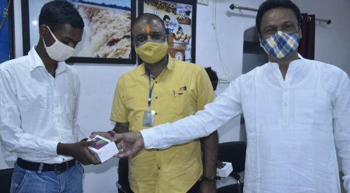 जगदलपुर:- कोरोना संक्रमण काल की वजह से लगे लॉकडाउन और स्कूलों में अध्ययन कार्य ऑनलाइन की वजह से कई छात्रों के सामने विपरीत परिस्थितियां उत्पन्न हो गई है ऐसे में छत्तीसगढ़ सरकार के संवेदनशील मुख्यमंत्री भूपेश बघेल हर वर्ग की समस्याओं के निदान में जुटी है।शासन की मंशा है कि कोई भी छात्र का भविष्य किसी सुविधा के अभाव में अंधकार में ना हो जाए।इसी को ध्यान में रखते हुए शिक्षा विभाग द्वारा आज संसदीय सचिव एवं विधायक जगदलपुर रेखचंद जैन व क्रेडा चेयरमेन मिथिलेश स्वर्णकार के माध्यम से हायर सेकेंडरी आड़ावाल के जयमन ठाकुर,दृष्टिबाधित विद्यालय के सूरदास मरकाम,भगत सिंह स्कूल लालबाग के संजय मौर्य को मोबाइल प्रदान किया गया।
