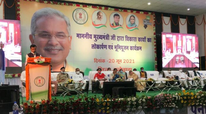 मुख्यमंत्री भूपेश बघेल ने आज यहां अपने निवास कार्यालय में आयोजित वर्चुअल कार्यक्रम द्वारा दंतेवाड़ा जिले में 340 करोड़ 71 लाख रूपए के 657 विकास कार्यों का लोकार्पण-भूमिपूजन किया।