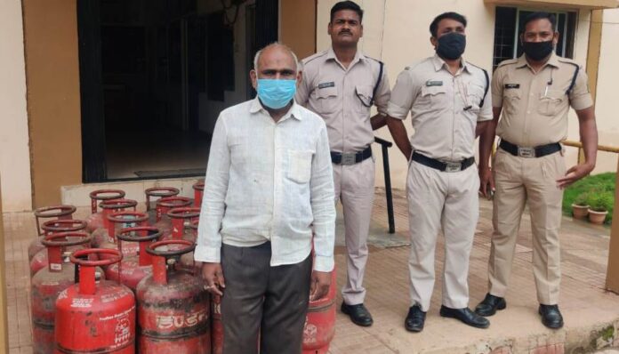 जगदलपुर शहर में अवैध रूप से एल.पी. जी. गैस एवं सिलेण्डर रखकर अनाधिकृत रूप से विक्रय करने वाले के व्यक्ति के विरुद्ध कार्यवाही करने में बस्तर पुलिस द्वारा सफलता हासिल की गई है थाना सिटी कोतवाली जगदलपुर को सूचना प्राप्त हुआ था कि जगदलपुर में किसी व्यक्ति के द्वारा अवैध रूप से गैस सिलेंडर एवं एलपीजी गैस एवं गैस सिलेंडर का संग्रहण का विक्रय किया जा रहा है सूचना पर वरिष्ठ पुलिस अधीक्षक जितेंद्र सिंह मीणा , अति. पुलिस अधीक्षक ओम प्रकाश शर्मा के मार्गदर्शन एवं नगर पुलिस अधीक्षक हेमसागर सिदार के पर्यवेक्षण में थाना प्रभारी कोतवाली एमन साहू के नेतृत्व में टीम गठित कर कार्यवाही हेतु रवाना किया गया था उक्त टीम के द्वारा मोती तालाब पारा में चिन्हित स्थल पर रेड कार्यवाही किया गया रेड कार्यवाही के दौरान एक व्यक्ति को घेराबंदी कर पकड़ा गया जिससे पूछताछ करने पर अपना नाम ओमप्रकाश लोढ़ा निवासी मोतीतालाब पारा होना बताया कि घर की तलाशी लेने कब्जे से 19 नग एल.पी.जी. के गैस सिलेंडर बरामद किया गया जिनमें से 5 कमर्शियल गैस सिलेंडर HP के भरे हुए और 14 नग इंडियन गैस के खाली सिलेंडर बरामद किया गया ! जिससे पूछताछ करने पर अपने पास गैस एवम सिलेंडर रखने के सम्बंध में किसी प्रकार का वैध दस्तावेज प्रस्तुत नही किया गया! आरोपी ओमप्रकाश लोढ़ा का उक्त कृत्य आवश्यक वस्तु अधिनियम की परिधि में आने से आरोपी ओमप्रकाश लोढ़ा के विरुद्ध थाना कोतवाली में धारा 3 , 7 आवश्यक वस्तु अधिनियम एवं द्रवीकृत पेट्रोलियम गैस कंडिका 6 एवं 9 के तहत अपराध पंजीबद्ध कर अनुसंधान में लिया गया है मामले में आरोपी ओमप्रकाश लोढ़ा को गिरफ्तार कर न्यायिक रिमांड पर न्यायालय भेजा गया