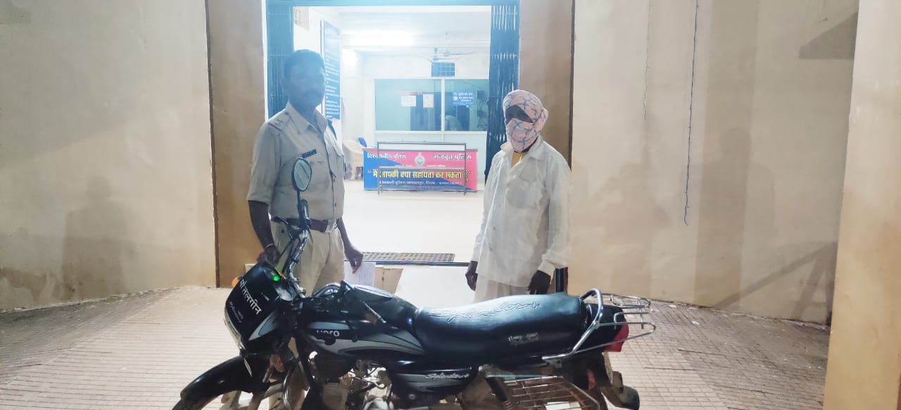 पुलिस थाना कोतवाली में प्रार्थी चैतराम निषाद निवासी कोण्डावल मांझीपारा ने उपस्थित आकर लिखित आवेदन प्रस्तुत किया कि आज दिनांक 09.07.2021 को दिन के 12ः00 बजे तहसील कार्यालय जगदलपुर आया था। मोटर सायकल हिरो स्प्लेण्डर क्रमांक- CG 17 KJ 8091 को कार्यालय के सामने खड़ा किया था। लगभग 03ः00 बजे वापस आकर देखा मोटर सायकल वहाॅ पर खड़ा नहीं था। कि सूचना पर प्रार्थी से आवेदन प्राप्त कर, तत्काल मौके पर जाकर उक्त मोटर सायकल का पता तलाश किया गया।