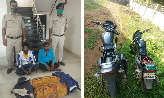 02 मोटर सायकल से 10 कि.ग्रा. गांजा के साथ दो आरोपी बालोद पुलिस के गिरफ्त में