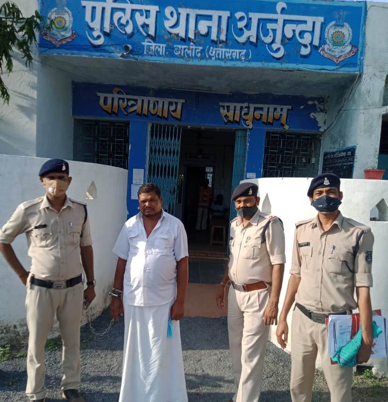 मामले को गंभीरता से लेते हुये 06 महिने से फरार चल रहे आरोपी की पता तलास हेतु पुलिस अधीक्षक महोदय सदानंद कुमार व अतिरिक्त पुलिस अधीक्षक महोदय डी.आर.पोर्ते के निर्देषन पर तथा उप पुलिस अधीक्षक दिनेष कुमार सिन्हा के पर्यवेक्षण में निरीक्षक कुमार गौरव साहू व प्रआर 1633 भुनेष्वर मरकाम व अन्य की टीम आरोपी की पता तलास तथा गिरफ्तारी हेतु टीम रवाना किया गया था। टीम के द्वारा आरोपी के निवास स्थान ग्राम बनियाटोला, थाना छुरिया, जिला राजनादगांव में दबिष दी गई जहां आरोपी तमेष्वर पटेल को अपने घर व गांव से करीबन 06 माह से नही रहना पता चला, आसपास ग्रामीणों से कोई जानकारी आरोपी के संबध में नही मिलने से आरोपी के परिजनो से टीम के द्वारा अन्य बहाने देकर पुछताछ करने पर आरोपी के कुछ संदिग्ध मोबाईल नम्बर टीम को प्राप्त हुये। आरोपी के परिजन व अन्य लोगो से पुछताछ पर प्राप्त सूचना तथा प्राप्त मोबाईल नम्बर का सायबर सेल के मदद से तकनीकी डेटा प्राप्त कर विषलेषण पश्चात् आरोपी के संभावित स्थल थाना गण्डई क्षेत्रातंर्गत ग्राम रोड़ अतरिया जाकर पता साजी किया गया तथा संदेही का छुपे हुये स्थान पर पुलिस के द्वारा दबिष दी गई। पंरतु आरोपी रात्रि के अंधेरे का फायदा उठाकर वहां से फरार होने में सफल रहा। पुनः आरोपी के निकटतम मेल जोल वाले व्यक्तियो के संबध में सूचना प्राप्त कर आरोपी के पाये जाने वाले संभावित जगहो पर दबिष दिये जाने पर ग्राम रोड़ अतरिया के दुसरे मोहल्ले से आरोपी तमेष्वर पटेल को पकड़ने में थाना अर्जुन्दा पुलिस द्वारा सफलता पायी गई। आरोपी से बारीकी से पुछताछ करने व आरोपी द्वारा उक्त अपराध घटित करना कबुल किये जाने तथा आरोपी के विरूद्ध पर्याप्त साक्ष्य पाये जाने पर दिनंाक 17.07.2021 के 15/30 बजे गिरफ्तारी कर न्यायिक रिमांड पर भेजा गया।