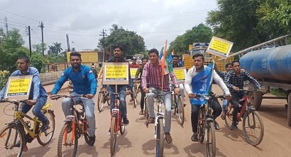 दल्लीराजहरा:- देश में प्रतिदिन बढ़ती महंगाई पेट्रोल डीजल रसोई गैस के दाम में बढ़ोतरी होने के विरोध में केंद्र सरकार के खिलाफ एनएसयूआई प्रदेश अध्यक्ष अकाश शर्मा जी के निर्देश पर एवं जिला पंचायत उपाध्यक्ष मिथिलेश नरेटी के मार्गदर्शन में आजNSUI डौंडीलोहारा विधानसभा अध्यक्ष भरत देवांगन एवं उनकी टीम द्वारा दल्ली राजहरा में साइकिल रैली निकाल कर बढ़ती महंगाई के विरोध प्रदर्शन किया गया। यह साइकिल रैली कि शुरुआत जैन भवन चौक से कि गयी थी। जो मुख्य मार्ग होते हुए वापस जैन भवन चोक में आकर ही खत्म हुई |