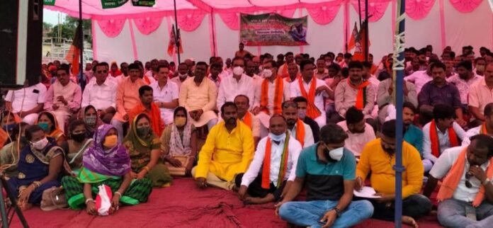आज के इस धरना प्रदर्शन में राकेश द्विवेदी महामंत्री दल्लीराजहरा मण्डल, अब्दुल इब्राहीम, किरण सिन्हा, भूपेंद्र श्रीवास, महेंद्र पिपरे, नीलावती साहू, शंकर साहू, सुमीत जैन, मनोज दुबे,सुरेश केसरवानी,राजू सिन्हा,हेमंत देशमुख,चिमन देशमुख,पुष्पेंद्र बैस,योगेंद्र गांधी,पोसन बनपेला,राजू अग्रवाल,मयंक बाफना,लेखराम पटेल,ढाल साहू,धर्मेंद्र निषाद,संदीप जैन, रेमन अटल, धनेश बघेल,हीरेन्द्र गायकवाड़,योगेंद्र तिवारी, पलाश गुप्ता, सुरेश देशमुख,दसोदा भूआर्य,सानोतिन यादव, सहित सभी मोर्चा व प्रकोष्ठ के जिम्मेदार पदाधिकारी मौजूद रहे ।