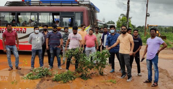 नगर पालिका में खराब सड़को से वार्डवासियों सहित आमजन को हो रही भारी तक्लीप को देखते हुए आज युवा मोर्चा जिलाध्यक्ष जैकी कश्यप के नेतृत्व में नगर पालिका के मुख्य सड़कों में बने गड्ढो में वृक्षारोपण कर जनता को सुविधा देने में नाकाम शासन को चेताया छोटे से नगर पालिका में बने सड़को की मरम्मत करने में यह सरकार पूरी तरह से विफल साबित हो रही है जैकी कश्यप ने कहा कि नगर पालिका के बने सड़को में गड्ढो से आये दिन दुर्घटना घट रही है आम जन को नुकसान हो रहा है इसको लेकर शाशन प्रशासन को कोई चिंता नही भविष्य में किसी तरह की अप्रिय घटना न हो और आम जन को मिलने वाली सुविधा मिल सके इसको लेकर युवा मोर्चा सड़क की लड़ाई लड़ने उतरी है जिसका वार्डवासियों द्वारा पूरा साथ दिया जा रहा है अगर जल्द सड़क नाली निर्माण नही की गई तो उग्र आंदोलन होगी जिसकी जवाबदारी शाशन प्रशासन की होगी आज के कार्यक्रम में प्रदेस सदस्य अभिषेक बेनर्जी जिला महामंत्री पंकज जैन उपाध्यक्ष हेमंत सोनवानी, मयंक जैन,सनी ठाकुर,कमल कोर्राम,विक्की,उदय उइके, निहाल, पंडिराम,जयसिंग,रमेश मानिकपुरी,रोहन तिवारी,ऋषभ जैन,विनोद उसेंडी सहित अन्य कार्यकर्ता मौजूद रहे।