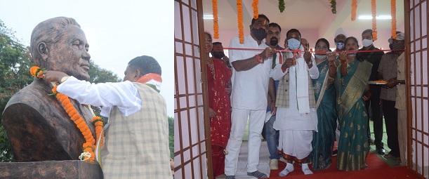 मंत्री लखमा सहित जनप्रतिनिधियों ने किया शहीद महेन्द्र कर्मा की प्रतिमा पर माल्यार्पण शहीद महेन्द्र कर्मा विश्वविद्यालय परिसर में नवनिर्मित कन्या छात्रावास का लोकार्पण करने पहुंचे प्रभारी मंत्री कवासी लखमा, संसदीय सचिव रेखचंद जैन, क्रेडा के अध्यक्ष मिथिलेख स्वर्णकार, महापौर सफीरा साहू, नगर निगम अध्यक्ष कविता साहू सहित जनप्रतिनिधियों ने परिसर में स्थापित शहीद महेन्द्र कर्मा की प्रतिमा पर माल्यार्पण किया।