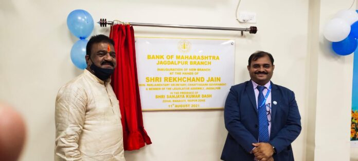 विधायक जगदलपुर एवं संसदीय सचिव ( नगरीय प्रशासन एवं श्रम विभाग ) रेखचंद जैन ने शहर के शहीद पार्क गढ़ कलेवा के सामने बैंक आफ महाराष्ट्र के नवनिर्मित जगदलपुर ब्रांच का शुभारंभ किया |