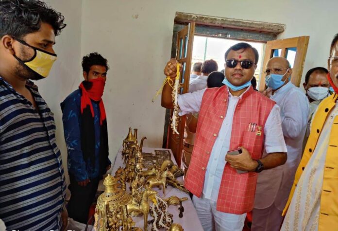 जगदलपुर/बस्तर जिले के प्रभारी मंत्री कवासी लखमा व साँसद दीपक बैज ने दलपत सागर के समीप स्थित लोक निर्माण विभाग के विद्युत एवं यांत्रिकी के पुराने कार्यालय का जीर्णोद्धार कर बनाए जा रहे बस्तर आर्ट गैलरी का अवलोकन किया। इस अवसर पर महिला स्व-सहायता समूह द्वारा संचालित की जा रही गढ़कलेवा के विभिन्न व्यजनों का स्वाद प्रभारी मंत्री और उपस्थित अतिथियों ने लिए। प्रर्दशनीय विक्रय हेतु लगाए गए विभिन्न कलाकृतियों का अतिथियों के द्वारा अवलोकन किया गया तथा उनकी कलाकृतियों की सराहना की गई। प्रभारी मंत्री ने बस्तर अंचल की संस्कृति और परंपरागत कलाकृतियों को आमजन तक पहुंचाने के लिए किए जा रहे इन प्रयासों के लिए जिला प्रशासन की सराहना करते हुए मंत्री लखमा ने कहा कि यहां पारंपरिक रुप से तैयार किए जाने वाले शिल्पों को सैलानियों के सामने तैयार किया जाएगा, जिससे सैलानियों को इसके बनाने की प्रक्रिया का ज्ञान होगा। इसके साथ ही वे इन शिल्पों को तैयार करने वाले कलाकारों के हुनर और परिश्रम से भी परिचित होंगे। बस्तरिया कलाकारों की परिश्रम एवं प्रतिभा का ज्ञान होने पर निश्चित तौर पर इसका सम्मान और कलाकृतियों की मांग बढ़ेगी।