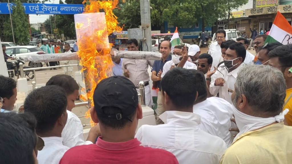 बालोद – छत्तीसगढ़ प्रदेश कांग्रेस कमेटी के निर्देश पर बालोद जिला कांग्रेस कमेटी के द्वारा बालोद के जयस्तंभ चौक के पास जिला कांग्रेस के पदाधिकारियों एवं कार्यकर्ताओं के द्वारा भारतीय जनता पार्टी का पुतला दहन किया गया। बालोद जिला कांग्रेस कमेटी के महामंत्री रतिराम कोसमा ने बताया कि राज्यसभा में छत्तीसगढ़ के सांसद फुलोदेवी नेताम एवं छाया देवी वर्मा के साथ भारतीय जनता पार्टी के साजिश से राज्यसभा के मार्सेलो के द्वारा छत्तीसगढ़ की महिला सांसदों के साथ बदसलूकी की गई जिसे छत्तीसगढ़ के कांग्रेसियों ने गंभीरता से लेते हुए, विरोध प्रदर्शन करते हुए पुतला दहन किया।