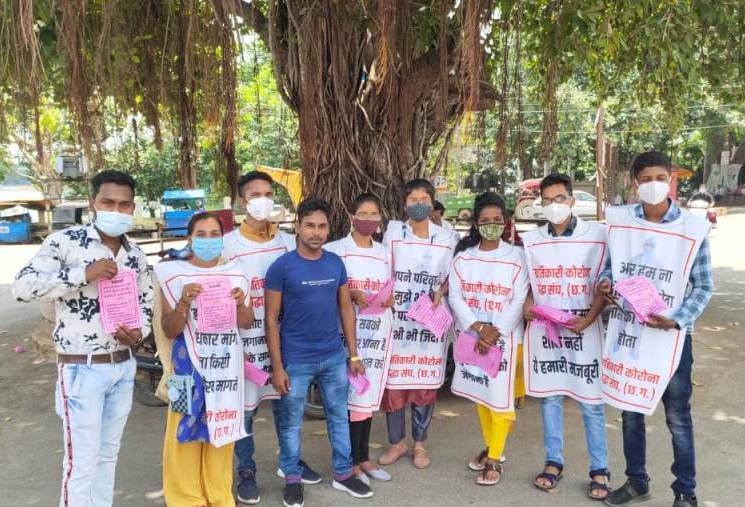 कोरोना काल के समय कोरोना महावारी के बचाव के लिये जिले भर में अस्थायी स्वास्थ कर्मियों की नियुक्ति की गई थी,जिसे कोरोना योद्धा का नाम दिया गया था। इन्होंने आपदा के समय विषम परिस्थिति में कोरोना से लड़ने के लिए सरकार का साथ दिया,कोरोना के नाम से पीड़ित व्यक्ति को देखकर उनके सगे भी साथ छोड़ देते थे उस समय इन कोरोनो योद्धाओं ने अपना सेवा दिया। मगर तीन माह होने के बाद सभी कोरोना योद्धाओं को उन्हें उनके कार्य से निकाल दिया गया। कोरोना योद्धाओं ने अपने कार्य को निरंतर रखने के लिये सभी से अपनी गुहार लगाई मगर सभी ने तुम्हे रखने के लिए फंड नही है कहकर वापस भेज दिया गया। जबकि जिले भर की स्वास्थ केंद्रों में अब भी स्वास्थ कर्मियों की आवश्यकता है। ऐसे स्थिति में अपने कार्य को लेकर चिंतित सभी कोरोना योद्धाओं ने रायपुर में हो रहे 5 दिवसीय धरना में उपस्थित होकर गोबर उठा कर व कैंडल मार्च निकालकर सरकार के खिलाफ प्रदर्शन किया।