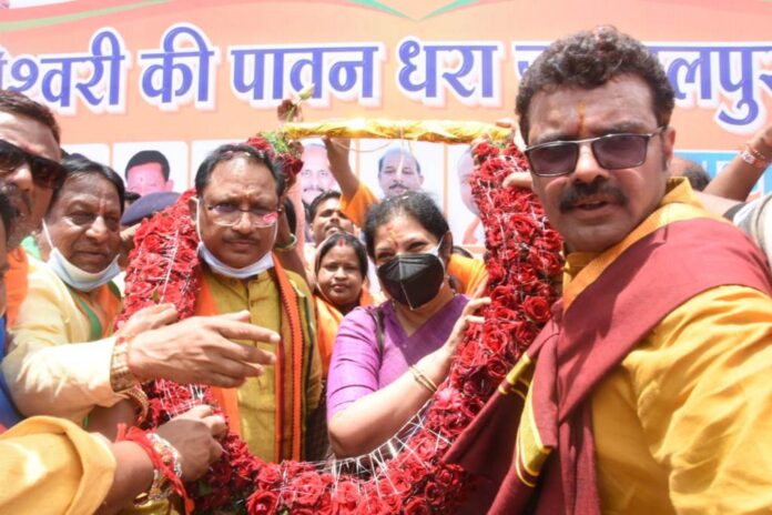 प्रदेश प्रभारी पुरनदेश्वरी देवी के साथ प्रदेश अध्यक्ष विष्णुदेव साय पूर्व मुख्यमंत्री रमन सिंह पहुंचे