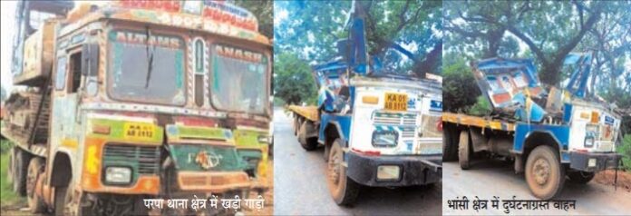 एक बचेली थाना क्षेत्र में हुई दुर्घटनाग्रस्त दूसरी परपा थाना क्षेत्र में शिफ्टर लोड कर खड़ी