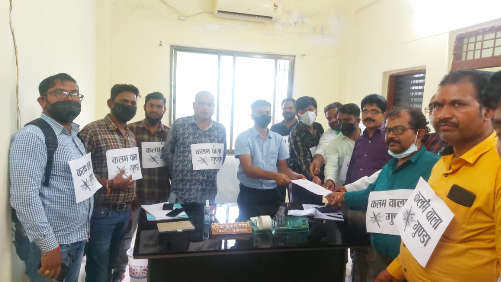 कोंडागांव । जिले के पत्रकारों ने अपने सीने में कलम वाला गुंडा का तख्ती टांगकर अनोखा प्रदर्शन करते हुए महामहिम राज्यपाल के नाम कलेक्टर को ज्ञापन दिया।महामहिम के नाम कलेक्टर को ज्ञापन सौंपने के सांथ जिला पुलिस अधीक्षक सिद्धार्थ तिवारी से भेंट करके पत्रकारों के खिलाफ पुलिस थानों मे बनाकर रखें गये गुंडा बदमाश सूची के समीक्षा करके निर्दोष लोगों का नाम ससम्मान सूची से हटाने की मांग किया । इसके सांथ जिले के वरिष्ठ पत्रकार राज शार्दूल से पुलिस थाना केशकाल के उपनिरीक्षक द्वारा दूरभाष पर अमर्यादित व्यवहार करते धमकी चमकी देने पर क्षोभ जाहिर करते उनके खिलाफ सख्त कार्रवाई करने की मांग किया।इसके अलावा फर्जी पत्रकार बनकर फर्जी पत्रकार बनाने एवं अवांछित गतिविधियों में संलिप्त रहने वालों के विरूद्ध कार्रवाई करने की तरफ ध्यान आकर्षित किया। जिस पर पुलिस अधीक्षक ने पत्रकारों को दिलासा दिया की जिन बिंदूओं पर आप लोगों ने ध्यान आकर्षित किया है उन सभी की जांच कर विधिसम्मत उचित कार्रवाई किया जायेगा।