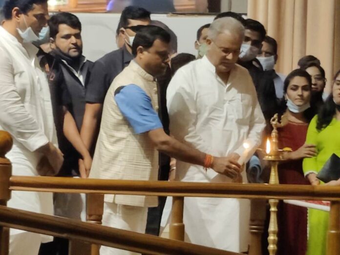 मुख्यमंत्री माननीय भुपेश बघेल,बस्तर के युवा साँसद दीपक बैज,रायपुर महापौर एजाज ढेबर,अध्यक्ष प्रमोद दुबे,भिलाई विधायक देवेंद्र यादव एवँ अन्य अतिथिगण मंच में मौजूद..