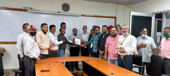कल दिनांक ३०-०९-२०२१ को एटक,इंटक,और बी,एम,एस, ने संयुक्त रूप से सेल अध्यक्षा महोदय स्टील अथॉरिटी ऑफ़ इंडिया लिमिटेड को महाप्रबंधक खदान, आईओसी राजहरा के द्वारा ज्ञापन सौंपकर महारत्न सेल के विभिन्न इकाईओं में कार्यरत नियमित कर्मियों के लंबित वेतन समझौते को जल्द से जल्द पूर्ण करने एवं परम्परानुसार दुर्गा पूजा के समय दिए जाने वाले बोनस हेतु सम्मानजनक राशि का निर्णय एवं घोषणा करने की मांग की |