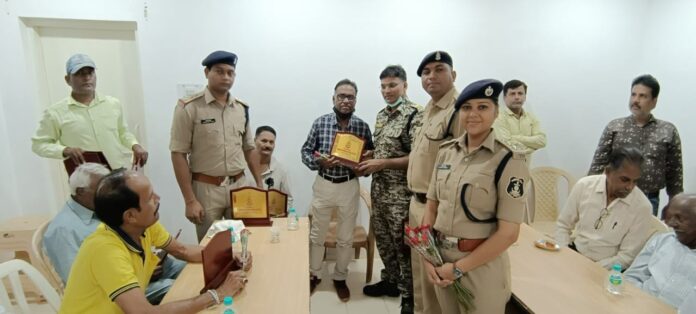 पुलिस मुख्यालय के निर्देशन पर पुलिस अधीक्षक जितेंद्र सिंह मीणा के मार्गदर्शन में अतिरिक्त पुलिस अधीक्षक ओमप्रकाश शर्मा, डी एस पी ललिता मेहर, डी एस पी अपूर्वा सिंह क्षत्रिय,थाना प्रभारी कोतवाली एमन साहू व थाना प्रभारी बोधघाट धनंजय सिन्हा एवं अन्य पुलिस अधिकारियों व कर्मचारियों की उपस्थिति में पुलिस लाईन में आज 1 अक्टूबर को वरिष्ठ नागरिक दिवस का कार्यक्रम आयोजित किया गया था, इस अवसर पर शहर के 50 से अधिक वरिष्ठ गणमान्य नागरिकों को सम्मानित किया गया, अधिकांश वरिष्ठ नागरिक खेल, शिक्षा व समाज सेवा जैसे विभिन्न क्षेत्रों में अभी भी अपनी सक्रिय भूमिका निभा रहे हैं, पुलिस के द्वारा इन्हें वरिष्ठ नागरिकों के अधिकारों के सम्बन्ध में बने विभिन्न कानूनी उपबन्धों के बारे में जानकारी दी गयी, उनका कुशल क्षेम पूछा गया, साथ ही प्रतिमाह वरिष्ठ नागरिको के साथ बैठकर उनके समस्याओं के सम्बंध में चर्चा करने व उनकी सहायता करने की बात कही गयी |