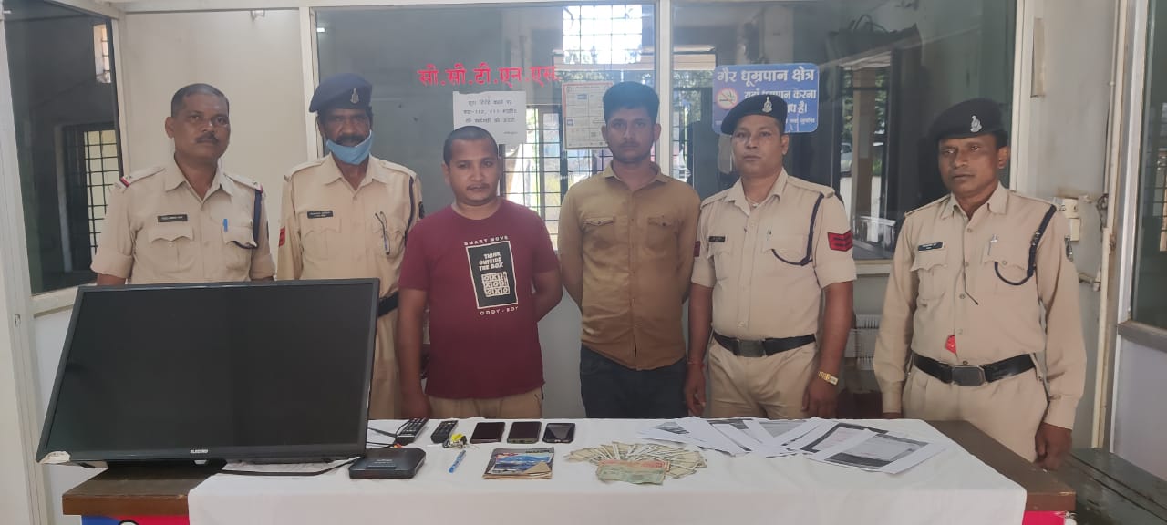 जगदलपुर शहर में आईपीएल 20-20 क्रिकेट मैच पर सट्टा लगाकर, धन अर्जित करने वाले दो सटोरियो पर कार्यवाही करने में बस्तर पुलिस को सफलता मिली है। ज्ञात हो कि दिनांक 05.10.2021 को अम्बर लाॅज जगदलपुर के रूम नंबर 205 में कोई बाहरी व्यक्ति रूके हुये है जो अपनी मोबाईल फोन से अलग-अलग टीमों पर हारजीत का दांव लगवाकर अवैध रूप से सट्टा नामक जुआ खेला रहे है। कि सूचना प्राप्त हुआ था जिस पर वरिष्ठ पुलिस अधीक्षक जीतेन्द्र सिंह मीणा एवं अति0 पुलिस अधीक्षक ओमप्रकाश शर्मा के मार्गदर्शन में नगर पुलिस अधीक्षक हेमसागर सिदार के पर्यवेक्षण में निरीक्षक एमन साहू के नेतृत्व में टीम गठित कर, टीम को अम्बर लाॅज रवाना किया गया। जहाॅ पर टीम द्वारा पहुंचकर उक्त स्थान पर घेराबंदी किया गया। दो व्यक्ति जिसका नाम पता पुछने पर, अपना नाम 1.बलराम झा ,शंकर कुमार सिन्हा निवासी तोंगपाल जिला सुकमा का रहने वाला बताया। जिसके पास में रखे मोबाईल जिसमें मुम्बई इंडियंस व राजस्थान रांयल्स मैच परं लोगों को मोबाईल और टीव्ही के माध्यम से सट्टा खिलाकर रकम प्राप्त करना स्वीकार किये। मौके पर उक्त सटोरियों के कब्जे से 03 नग मोबाइल , एक नग एलईडी टीव्ही, एक पल्सर मोटर सायकल, नगदी रकम 11,000/-रूपये एवं 2373450 ₹ सट्टा-पट्टी स्क्रीनसाॅट पेपर एवं रजिस्टर आदि को बरामद किया गया है। आरोपियों के विरूद्ध धारा 4-क जुआ एक्ट के तहत् कार्यवाही कर, गिरफ्तार किया गया है।