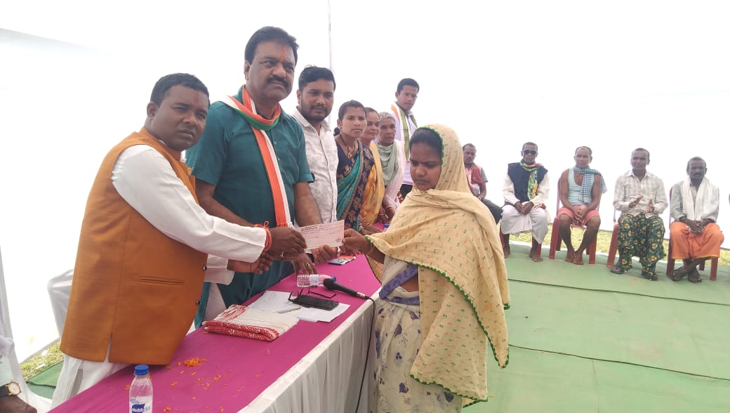 मावलीपदर के कांग्रेसी नेता उमेश बेसरा जिनका विगत माह मोटर सायकल दुर्घटना में निधन हो गया था उसकी पत्नी शांति बेसरा को संसदीय सचिव ने एक लाख रुपये का चेक प्रदेश के संवेदनशील मुख्यमंत्री भुपेश बघेल जी के स्वेच्छानुदान मद से स्वीकृत सहायता राशि एक लाख रुपए का चेक प्रदान कर सांत्वना दी।