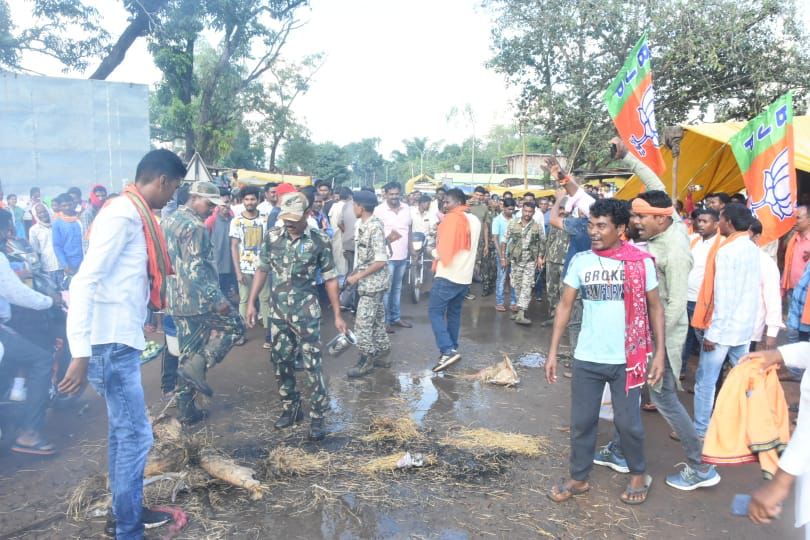 विरोध में उपस्थित छत्तीसगढ़ सरकार के पूर्व मंत्री व भाजपा प्रदेश प्रवक्ता केदार कश्यप ने कहा कि सरकार के इशारे पर बेगुनाह हिंदुओं पर लगातार कार्यवाही की जा रही है जिसका पूरा छत्तीसगढ़ विरोध कर रहा है वहीं दूसरी तरफ मुख्यमंत्री भूपेश बघेल जी धार्मिक दंगों में जलता हुआ छत्तीसगढ़ को छोड़कर यूपी में राजनीतिक रोटियां सेक रहे हैं। विरोध प्रदर्शन के उपस्थित ग्रामीणों ने भूपेश बघेल को जमकर नारेबाजी कर कोसा। विरोध में मंडल अध्यक्ष संतोष बघेल, जिला पंचायत सदस्य निर्देश दीवान, जनपद सदस्य भोला राम पटेल, भूषण गुप्ता, प्यारी लाल कश्यप, भक्तु राम, लखमू कश्यप, संपत कश्यप, सुनील कश्यप, लुढ़का राम, टिंगली राम, सुदरू कश्यप,संतो पटेल, भाजयुमो मंडल अध्यक्ष तुलसू राम, महामंत्री रामप्रसाद मौर्य, हरबंधू बघेल, मुकेश दीवान, लच्छिन बघेल, शेख सिराजुद्दीन, अभिषेक राव, हीरा कश्यप, रमेश दीवान, सिंधु, लेबो भाजपा, भाजयुमो पदाधिकरी कार्यकर्त्ता उपस्थित थे।