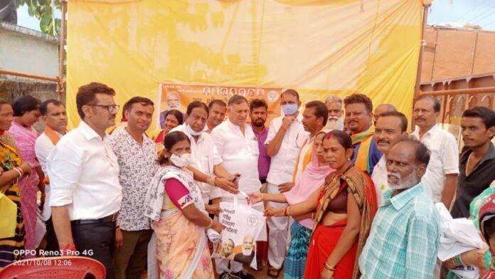 मोदी जी के शासन काल को 20 वर्ष होने पर गरीब परिवारों ने बधाई प्रेषित किया। बस्तर प्रभारी लोकेश कावड़िया जी ने कहा छत्तीसगढ़ के 40 लाख गरीब परिवार को मिलने वाले केंद्र की गरीब कल्याण अन्न योजना का लाभ कांग्रेस की भूपेश सरकार के द्वारा नही दिया जा रहा है जिसके विरोध में छत्तीसगढ़ के 12 हजार 981 राशन दुकानों के समक्ष भाजपा द्वारा धरना दिया जा रहा है,गरीबो के चावल में जिस तरह से कटौती की गई है इससे राज्य सरकार 15 लाख करोड़ का बचत कर गरीबो का पेट काटा है। पूर्व विधायक संतोष बाफना जी ने कहा कि यह भूपेश सरकार नहीं भूखेश सरकार है जिसने गरीबों कल्याण अन्न योजना का राशन उन तक नहीं पहुंचाया और, हमारे शासनकाल में जिस राशन दुकान से महीने के 5 तारीख तक समस्त हितग्राहियों को राशन वितरण होता था आज 8 तारीख होने के बाद भी बहुत से ऐसे राशन दुकान है जहां राशन सामग्री पहुंची तक नहीं और राशन दुकान में ताला लगा हुआ है, यह भी चिंता का विषय है| नगर अध्यक्ष सुरेश गुप्ता ने कहा अप्रैल 2020 से अब तक नहीं दिए चावल का मूल्य इन गरीबो के खाते में सीधे नगद राशि हस्तांतरित राज्य सरकार प्रदाय करे।नेता प्रतिपक्ष संजय पांडे ने कहा गांव गरीब किसान मजदूर को झूठ बोल कर वोट लेकर सरकार बनाई और